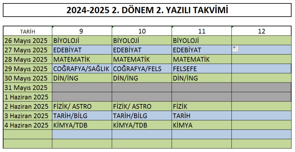 2024-2025 II. DÖNEM YAZILI TAKVİMİ